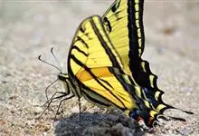 金凤蝶,是鳞翅目凤蝶科凤蝶属动物。金凤蝶为中型凤蝶,翅展70-84毫米,翅背面底色黑褐色,翅脉黑色,翅室具黄斑;前翅背面基部呈暗黄色,亚外缘为黑色,内具一列小黄斑;后翅背面亚外缘区具黑宽边,…全部>>
