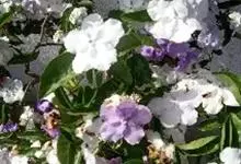 鸳鸯茉莉,茄科鸳鸯茉莉属常绿灌木植物,高1米。茎皮深褐色;分枝力强;单叶互生纸质;花簇生,聚伞花序,花冠五裂花瓣锯齿,含苞时蘑菇状深紫色,花香浓郁;花期4-10月。鸳鸯茉莉花朵芳香,…全部>>