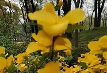 迎春花,木犀科素馨属的多年生木本植物,小枝细长直立或者呈拱形下垂;叶片呈卵形或椭圆形;花单生于叶腋处,苞片呈披针形或椭圆形,花冠为金黄色,花瓣通常为倒卵形或椭圆形;花期在6月。…全部>>