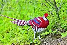 白颈长尾雉:大型鸡类,体长81厘米,体型大小和雉鸡相似。雄鸟头灰褐色,颈白色,脸鲜红色,其上后缘有一显著白纹,上背、胸和两翅栗色,上背和翅上均具1条宽阔的白色带,极为醒目;下背和腰黑色而具白斑;腹白…全部>>