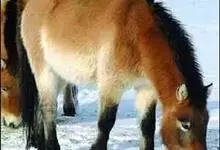 普氏野马:体长约210厘米,肩高约110厘米,尾长90厘米,体重350千克。头部长大,颈粗,耳比驴短,蹄宽圆。外形似家马,但额部无长毛,颈鬃短而直立。夏毛浅棕色,两侧及四肢内侧色淡,腹部乳黄色;冬毛…全部>>