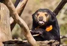 马来熊,是食肉目熊科马来熊属哺乳动物。体胖颈短,眼睛和耳朵小;头部短圆;全身乌黑光滑;鼻唇周为棕黄色,裸露无毛;眼圈为灰褐色,趾基部连有短蹼;胸斑中央有一个毛旋,颈部周围的一圈皮肤极松弛,…全部>>