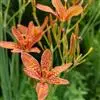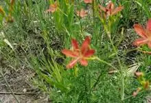 射干 Redouté)是鸢尾科射干属多年生草本植物。根状茎为不规则的块状,斜黄色或黄褐色;花橙红色,散生紫褐色的斑点;花药呈条形;子房下位,倒卵形;蒴果倒卵形或长椭圆形;种子圆球形,黑紫色,有光泽。…全部>>