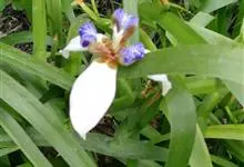 巴西鸢尾 Sprague)是鸢尾科、巴西鸢尾属多年生草本植物。株高40-50厘米。叶从基部根茎处抽出,呈扇形排列,叶片2列,叶宽约2厘米,带状剑形,革质,深绿色。花从花茎顶端鞘状苞片内开出,…全部>>
