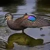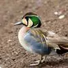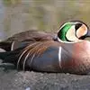 绿翅鸭是小型鸭类,体长37厘米,体重约0.5千克。嘴脚均为黑色。雄鸟头至颈部深栗色,头顶两侧从眼开始有一条宽阔的绿色带斑一直延伸至颈侧,尾下覆羽黑色,两侧各有一黄色三角形斑,在水中游泳时,极为醒目。…全部>>
