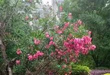 夹竹桃,又名红花夹竹桃、欧洲夹竹桃,是夹竹桃科夹竹桃属的一种常绿直立大灌木,枝条灰绿色,含水液。叶披针形,3叶轮生。聚伞花序顶生,花冠粉红至深红色,花冠漏斗状,有特殊香味。蓇葖果,圆柱形。种子长圆形,…全部>>