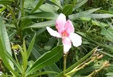 白花夹竹桃是夹竹桃科、夹竹桃属植物夹竹桃的栽培品种。常绿直立大灌木,枝条灰绿色;嫩枝条具稜,被微毛,老时毛脱落。叶3-4枚轮生,下枝为对生,叶面深绿,叶背浅绿色;侧脉纤细平行与中脉成直角;叶柄扁平,…全部>>