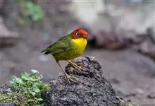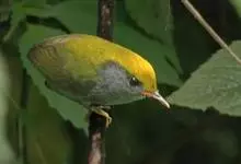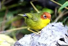 金冠地莺:形态与灰腹地莺相似,上体橄榄绿,前额至头顶渲染亮金黄色;下体几乎纯暗石板灰色,下嘴基部橙红色或橙黄色。虹膜褐色;上嘴角褐色,下嘴基部橙红色或深橙黄色直至嘴尖;跗跖和趾褐色,爪褐色。…全部>>