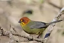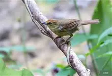 栗头地莺:小型鸣禽。体长约10厘米。体型纤细,是中国体型最小的鸟类之一;喙细尖,上喙先端多有缺刻;翅短圆;尾短至中等;腿短而细。羽色以灰、褐及橄榄绿为主,雌雄羽色相似。栖息于灌木或稀疏林内,…全部>>