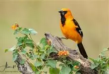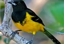 金黄鹂是中型鸣禽。体长24厘米。头全黄色。体羽鲜丽,主要由为黄和黑的颜色组合,雌鸟与幼鸟多具条纹。雄性成鸟眼先、翼及尾基部黑色,其余为鲜亮黄色。雌鸟较暗淡而多绿色。幼鸟偏绿色,下体具细密纵纹。虹膜红…全部>>