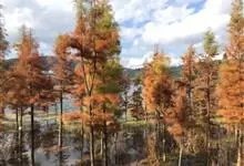 池杉 Croom)是杉科、落羽杉属植物,亦称池柏,沼落羽松。落叶乔木,高可达25米。主干挺直,树冠尖塔形。树干基部膨大,枝条向上形成狭窄的树冠,尖塔形,形状优美;叶钻形在枝上螺旋伸展;球果圆球形。…全部>>