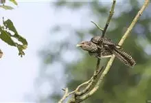 四声杜鹃:是中型鸟类,体长31-34厘米。头顶和后颈暗灰色;头侧浅灰,眼先、颏、喉和上胸等色更浅 ;上体余部和两翅表面深褐色 ;尾与背同色,但近端处具一道宽黑斑。下体自下胸以后均白,…全部>>