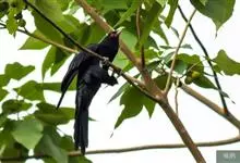 噪鹃是鹃形目杜鹃科噪鹃属鸟类,又名栽秧雀、哥好雀。雄鸟通体乌黑泛幽蓝色金属光泽,下体泛蓝绿色;虹膜血红色,啄淡土黄色,基部较暗,脚蓝灰色。雌鸟上体、翼和尾为深褐色,…全部>>