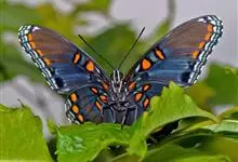 优红蛱蝶:翼展4.5-12厘米。是一种美丽的蝴蝶。色彩鲜艳,花纹相当复杂。前足相当退化,短小无爪。前翅R脉5条,常共柄。卵呈半圆球形。幼虫头上常有突起,体节上有枝刺,腹足趾钩1至3序中列式。蛹为垂蛹。全部>>