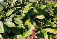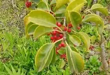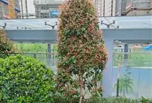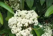 石楠 Kalkman),是蔷薇科石楠属的常绿乔木,高5~12米,株型紧凑,树冠圆球形。树枝为褐灰色;鳞片为褐色,没有毛;叶片革质,长椭圆至侧卵状椭圆形,有锯齿,新叶红色光亮。复伞房花序,白色小花,…全部>>