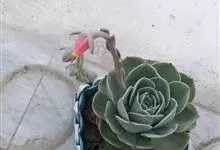 玉蝶 E.Morren)是景天科石莲花属多年生肉质草本植物,植株高可达60厘米。叶片互生,肉质,倒卵匙形,叶稍直立,先端圆且有小尖,微微向内弯曲,叶片淡绿色;单歧聚伞花序腋生,小花为钟形,赭红色,…全部>>