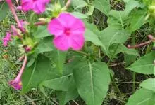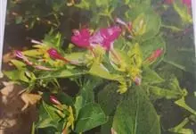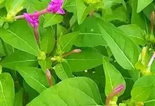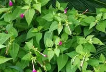 即紫茉莉,英文名:Four-o'clock,Marvel of Peru,为紫茉莉科、紫茉莉属多年生草本植物,一年生栽培。株高50~80cm。根粗壮,茎多分枝而散生。叶对生,卵形或心脏形。花数朵簇生…全部>>