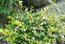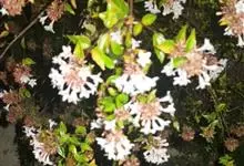 大花六道木,忍冬科六道木属半常绿矮生灌木。其幼枝为红褐色,有短柔毛;叶片倒卵形为墨绿色,有光泽;花粉钟形为白色;圆锥花序,开花繁茂;花期长,5~11月持续开花。…全部>>