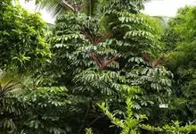昆士兰伞木,吕松鹅掌柴 ,称昆石兰遮树,澳洲鸭脚木、方式叶鹅掌柴、伞树、大叶伞。叶片阔大,柔软下垂,形似伞状,株形优雅轻盈,易于管理,适于客厅的墙隅与沙发旁边置放,是室内理想的观叶植物。但目前多由…全部>>