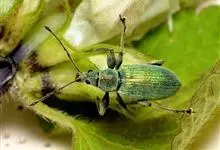甘薯小象甲是鞘翅目蚁象科甘薯小象甲属昆虫,又称甘薯蚁象、甘薯象、番薯臭虫。成虫除触角、前胸、中胸、足为赤褐色外,鞘翅、腹部为暗蓝色,有金属光泽;体型细长,…全部>>