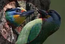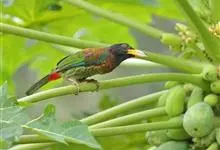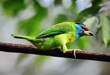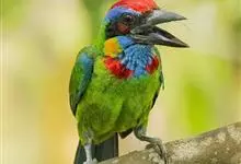 金喉拟啄木鸟,是须鴷科、拟啄木鸟属的鸟类。金喉拟啄木鸟为小型鸟类,体长19-24厘米。额深红色,头顶金黄色,后枕具一大块深红色斑,耳羽和头侧银灰色,上体草绿色,颏和上喉金黄色,下喉淡银灰色,…全部>>