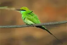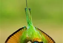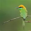 绿喉蜂虎是佛法僧目、蜂虎科的小型鸟类,共有9个亚种。身长22-25厘米,翼展29-30厘米,体重15-20克。喉绿色,额部、头顶至上背为锈红色,其余上体均为亮绿色。中央尾羽延长且端段狭细,…全部>>