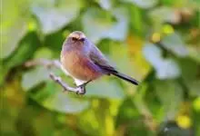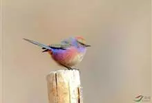 凤头雀莺:小型鸟类。体长9-10厘米,雄鸟呈毛茸茸的紫色和绛紫色,顶冠淡紫灰色,额及凤头白色,尾全蓝。雌鸟喉及上胸白,至臀部渐变成淡紫色,耳羽灰,…全部>>