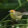 金头穗鹛小型鸟类,体长10~11厘米,是一种黄色小鸟。头顶金黄色有黑色纵纹,眼先黑色,在头、颊和耳羽金黄色的衬托下亦甚醒目。上体橄榄黄色,下体亮黄色,腹和两胁沾绿。…全部>>