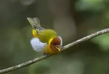 金头伪缝叶莺:体长10-12厘米,是一种体型小的棕顶冠、黄色腹森林莺类。头顶亮黄色,具明显的黄色眉纹,头侧、后颈和颈侧暗灰色,上体橄榄绿色,颏、喉及上胸部灰白,下胸及腹部为鲜艳黄色。两翅和尾褐色,羽…全部>>