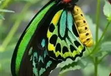 金裳凤蝶是凤蝶科、裳凤蝶属的动物。金裳凤蝶身体呈黑色,头、颈和胸侧有红毛,腹部有黑黄两色相间条纹,雄蝶前翅黑色,具黑天鹅绒光泽,各脉两侧灰白色,后翅金黄色,各室外缘有等腰三角形黑斑1枚,斑内侧有晕,…全部>>