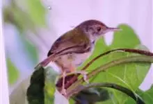 普通缝叶莺,是雀形目鹅科莺亚科缝叶莺属一种。体长10-14厘米,体重7-10克,雄鸟前额棕红,头顶至枕棕橄榄褐,上体橄榄绿染黄,飞羽及尾羽暗褐;繁殖期雄鸟的中央尾羽特形延长,下体淡皮黄白色。…全部>>