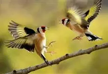 红额金翅雀:共有14个亚种。小型鸟类,体长12-14厘米。额、脸颊和颏朱红色,眼先和眼周黑色,在淡色的头部极为醒目。上体灰褐或乌褐色,尾上覆羽白色,两翅和尾黑色,翅上有黄色斑。下体喉、胸灰褐或乌褐色…全部>>