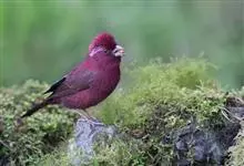 酒红朱雀小型鸟类,体长13~15厘米。雄鸟通体深红色,头部深朱红或棕红色,下背和腰玫瑰红色,眉纹粉红色而具丝绢光泽。两翅和尾黑褐或灰褐色、具暗红色狭缘,内侧两枚三级飞羽具淡粉红色先端。…全部>>
