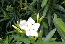 白花夹竹桃是夹竹桃科、夹竹桃属植物夹竹桃的栽培品种。常绿直立大灌木,枝条灰绿色;嫩枝条具稜,被微毛,老时毛脱落。叶3-4枚轮生,下枝为对生,叶面深绿,叶背浅绿色;侧脉纤细平行与中脉成直角;叶柄扁平,…全部>>