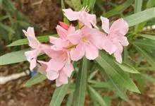 夹竹桃,又名红花夹竹桃、欧洲夹竹桃,是夹竹桃科夹竹桃属的一种常绿直立大灌木,枝条灰绿色,含水液。叶披针形,3叶轮生。聚伞花序顶生,花冠粉红至深红色,花冠漏斗状,有特殊香味。蓇葖果,圆柱形。种子长圆形,…全部>>