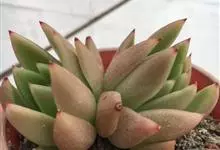 锦晃星是景天科、石莲花属多肉植物。多年生小灌木状多浆植物,灰绿色卵状倒披针形肥厚肉质叶轮状互生,全缘,椭圆尖头,长3-4厘米,宽2-2.5厘米,厚约1厘米,玲凉季节阳光下,叶端及上缘呈红色。…全部>>