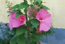 芙蓉葵是锦葵科木槿属植物,又名草芙蓉、大花秋葵,原产于北美。落叶灌木状。叶大、广卵形,叶柄、叶背密生灰色星状毛。花大,单生于叶腋,有白、粉、红、紫等色。喜阳、略耐阴,宜温暖湿润气候,忌干旱,耐水湿,…全部>>