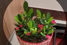 铁海棠为大戟科大戟属蔓生灌木植物;茎多分枝,具纵棱,呈旋转状;叶互生,通常集中于嫩枝上;每个花序基部边缘具微小的红色尖头;苞叶先端圆且具小尖头,无柄,上面鲜红色,下面淡红色;苞片丝状;子房光滑无毛,…全部>>
