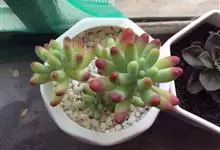 乙女心是景天科景天属的多肉植物,原产墨西哥。多年生亚灌木,茎叶肉质,株高5-30厘米。叶片簇生于茎顶,圆柱状,淡绿色或淡灰蓝色,叶先端具红色,叶长3~4厘米。花小,黄色。春秋为生长季,…全部>>