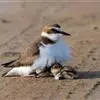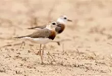 东方鸻:属小型涉禽。体重80-95克,体长220-255毫米。在夏季,前额、眉纹和头的两侧白色,头顶、背褐色或沙褐色。颏、喉白色,前颈棕色,胸棕栗色,其下有一黑色胸带紧靠其后,其余下体白色。嘴细长,…全部>>