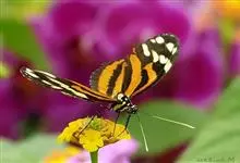 黑脉金斑蝶:翅阔8.6-12.4厘米。雄蝶较雌蝶为大。成年蝶颜色鲜艳,翅膀上有显眼的橙色及黑色斑纹,周围是宽阔的黑色边框,布有许多白色斑点。这种引人注目的着色是对捕食者的视觉警告,表示这个物种有毒;…全部>>