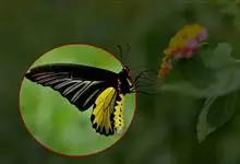 金裳凤蝶是凤蝶科、裳凤蝶属的动物。金裳凤蝶身体呈黑色,头、颈和胸侧有红毛,腹部有黑黄两色相间条纹,雄蝶前翅黑色,具黑天鹅绒光泽,各脉两侧灰白色,后翅金黄色,各室外缘有等腰三角形黑斑1枚,斑内侧有晕,…全部>>