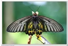 荧光裳凤蝶是凤蝶科裳凤蝶属的一种大型蝴蝶,该物种共有3个亚种。该蝶飞翔的时候姿态优美,前翅黑色,后翅金黄色和黑色交融的斑纹在阳光照射下金光灿灿,显得华贵美丽。幼虫寄主为多种马兜铃属的植物,取食马兜铃…全部>>