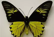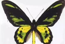 金裳凤蝶是凤蝶科、裳凤蝶属的动物。金裳凤蝶身体呈黑色,头、颈和胸侧有红毛,腹部有黑黄两色相间条纹,雄蝶前翅黑色,具黑天鹅绒光泽,各脉两侧灰白色,后翅金黄色,各室外缘有等腰三角形黑斑1枚,斑内侧有晕,…全部>>