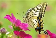 金凤蝶,是鳞翅目凤蝶科凤蝶属动物。金凤蝶为中型凤蝶,翅展70-84毫米,翅背面底色黑褐色,翅脉黑色,翅室具黄斑;前翅背面基部呈暗黄色,亚外缘为黑色,内具一列小黄斑;后翅背面亚外缘区具黑宽边,…全部>>