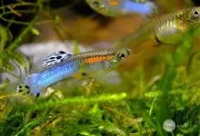 孔雀花鳉 ,俗名孔雀鱼,也称为凤尾鱼、彩虹花鳉、虹鳉、古比鱼等,是花鳉科花鳉属的一种热带鱼,雌雄鱼的体型和色彩差别较大,成年雄鱼身体瘦小,体长3-4厘米,体色绚烂多彩、体型优美;成年雌鱼体长5厘米…全部>>