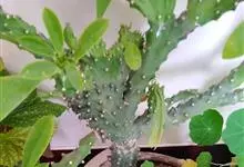 金刚纂,是大戟科大戟属的肉质灌木状小乔木。茎圆柱状,上部多分枝,叶片互生,少而稀疏,顶端钝圆,基部渐狭;花序二歧状腋生,苞叶膜质,总苞阔钟状,裂片半圆形,边缘具缘毛,雄花多枚;花期6-9月。…全部>>