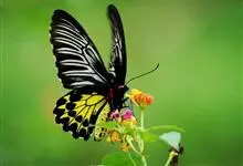 金裳凤蝶是凤蝶科、裳凤蝶属的动物。金裳凤蝶身体呈黑色,头、颈和胸侧有红毛,腹部有黑黄两色相间条纹,雄蝶前翅黑色,具黑天鹅绒光泽,各脉两侧灰白色,后翅金黄色,各室外缘有等腰三角形黑斑1枚,斑内侧有晕,…全部>>