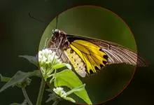 荧光裳凤蝶是凤蝶科裳凤蝶属的一种大型蝴蝶,该物种共有3个亚种。该蝶飞翔的时候姿态优美,前翅黑色,后翅金黄色和黑色交融的斑纹在阳光照射下金光灿灿,显得华贵美丽。幼虫寄主为多种马兜铃属的植物,取食马兜铃…全部>>