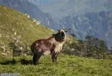 羚牛,偶蹄目牛科羚牛属哺乳动物,俗称扭角羚、野山牛、盘羊。其体形粗壮。尾短。吻鼻部隆起且裸露。前额隆起,毛短而蓬松。角基粗,由头顶长出后先向上升起,又突然翻转,靠近头部,复向外伸,然后又向后弯转,…全部>>